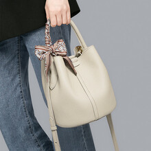 金狐狸520礼物真皮包包女2025夏爆款新款百搭通勤水桶包妈妈单肩斜挎包 米白色