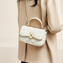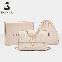金狐狸生日礼物送女生包包2025新款爱心包单肩包高级感真皮链条斜挎包女 白色【送女友送老婆情人节礼物】