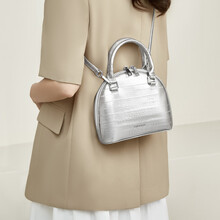金狐狸银色包包女大容量波士顿包2025夏季百搭枕头包女式手提单肩斜挎包 银色