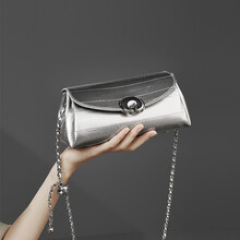 金狐狸女生礼物包包女2025爆款新款新中式盒子包单肩斜挎包链条包枕头包 银色