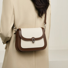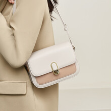 金狐狸真皮包包女2025爆款百搭豆腐包小方包轻便小包女式单肩斜挎包女包 米白/咖