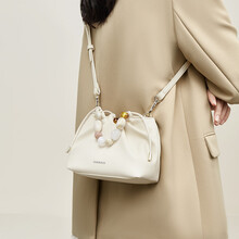 金狐狸女生礼物时尚水桶包包女2025新款爆款大容量斜挎包通勤单肩小挎包 米白色
