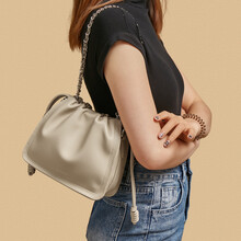 金狐狸软皮云朵包包女2025时尚水桶包链条包百搭手机包女士单肩斜挎女包 米白色