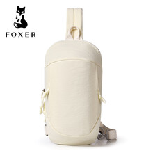 金狐狸斜挎包2025新款大容量防泼水牛津布休闲男女单肩包运动胸包小背包 米白色