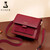 金狐狸520礼物送女友新款韩版百搭宽肩带斜挎时尚潮牛皮单肩风琴女包 红色