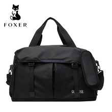 金狐狸旅行包大容量收纳运动包商务出差旅行斜跨包手提包行李袋独立鞋仓 黑色