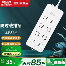 德力西 (DELIXI)国标防过载插座线芯加粗家用国标排插/升级款拼色排插/接线板/拖线板 【防过载】总控8位5孔1.8米