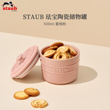 Staub厨房陶瓷储物罐系列调味料盒调料罐茶盒米盒谷物豆类铲勺收纳盒 储物罐500ml 蜜桃粉