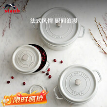 珐宝(staub)法国进口珐琅铸铁锅松露白平底锅双耳煲汤锅家用炖锅炒锅厨房好物 圆形炖锅松露白 20cm