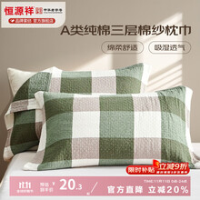 恒源祥 枕巾纯棉 A类100%全棉三层纱布枕巾一对装男士吸湿透气