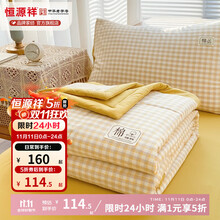 恒源祥 全棉夏凉被 可水洗里外全棉空调被双人可机洗纯棉夏被薄被子 春风拂面-黄 150*200cm【被子+枕套2+床单】