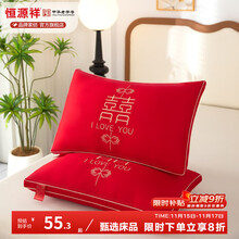 大红喜庆全棉羽丝绒结婚枕芯一对装蓬松柔软回弹刺绣婚庆枕 一对 大红婚庆-百年好合羽丝枕 48*74cm
