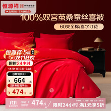 恒源祥 蚕丝被 100%双宫桑蚕丝被四季被全棉贡缎提花婚被结婚喜被 【100%双宫长丝】喜字蚕丝被 220*240cm 总重7.6斤