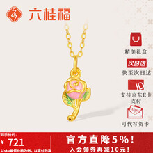 六桂福珠宝黄金吊坠女5D硬金足金莫奈玫瑰花珐琅链坠送女友生日礼物 约0.4克+玫瑰花礼盒【单吊坠不含链】