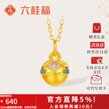 六桂福珠宝黄金吊坠女铃铛5D硬足金珐琅挂坠链坠送女友生日礼物 约0.35克+玫瑰花礼盒【单吊坠不含链】