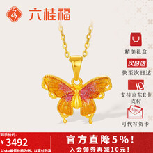 六桂福珠宝黄金吊坠女5G足金蝴蝶挂坠粉蝶珐琅链坠送女友生日礼物 2.45g【大版】