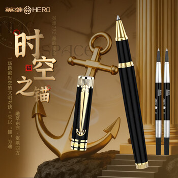 英雄(HERO)宝珠笔 时空之锚日常书写礼品钢笔高端商务办公男士女生礼物签字笔套装 黑色