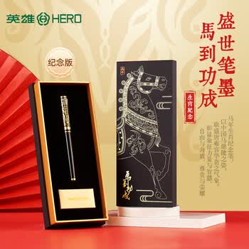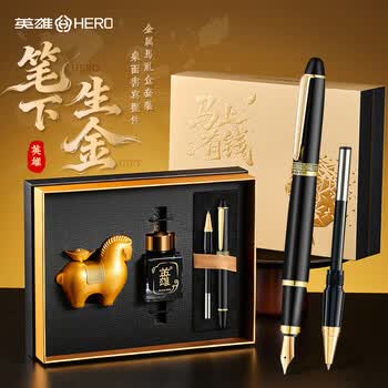 英雄(HERO)钢笔礼盒 开学礼物马年限定马上有钱系列签字笔日常书写礼品钢笔高端商务办公墨水套 黑色