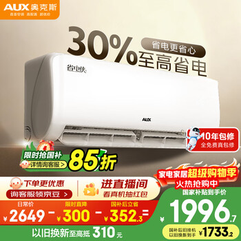奥克斯空调 省电侠 大1.5匹 新一级能效变频冷暖 节能防直吹 铜管空调 国家补贴 KFR-35GW/BpR3AQS1(B1)