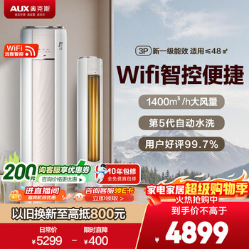 奥克斯空调 净享风 大3匹 新一级能效变频冷暖铜管空调 WiFi防直吹柜机 国家补贴 KFR-72LW/BpR3AQE1(B1)