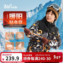 361°儿童套装25冬男女童3-14岁加绒印花针织运动套装 黑160