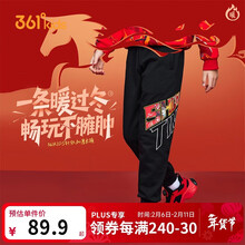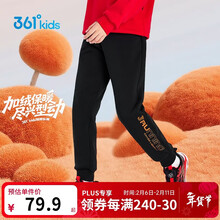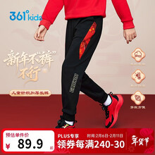 361°年装新年儿童长裤26春男中大童针织加绒保暖运动长裤 黑140