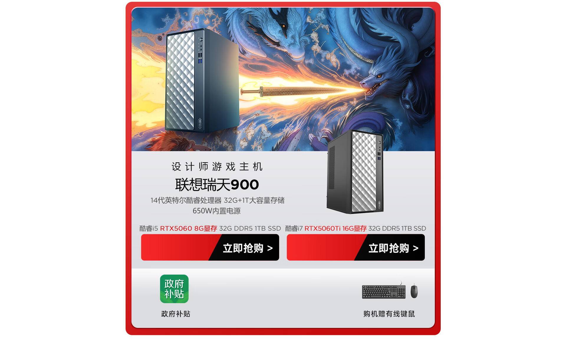 【国家补贴20%】电竞游戏、创意设计,酷睿i5处理器,16G内存,512GB固态硬盘,RX6600LE独显,3年质保!立即抢购》