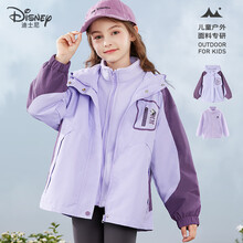 迪士尼女童冲锋外套儿童春秋装上衣中大童户外三合一防风衣DS011紫色160