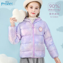 迪士尼儿童羽绒服外套女童轻薄连帽宝宝外穿短款洋气冬大童白鸭绒 QBX513363紫色迷彩 150适合145-155cm