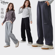 迪士尼女童裤子秋季儿童弯刀阔腿裤中大童休闲长裤春秋装 10038深灰 150