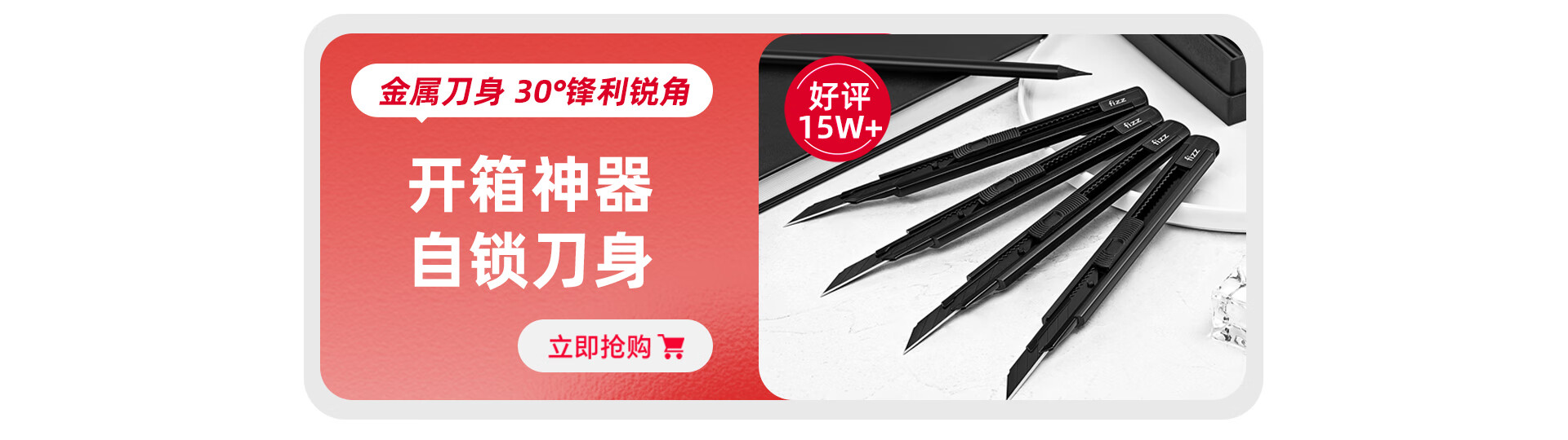 飞兹(fizz)黑刃特氟龙美工刀高碳钢大号52*2081mm自动锁60度裁纸壁纸刀/快递刀办公用品学生文具黑色FZ21512