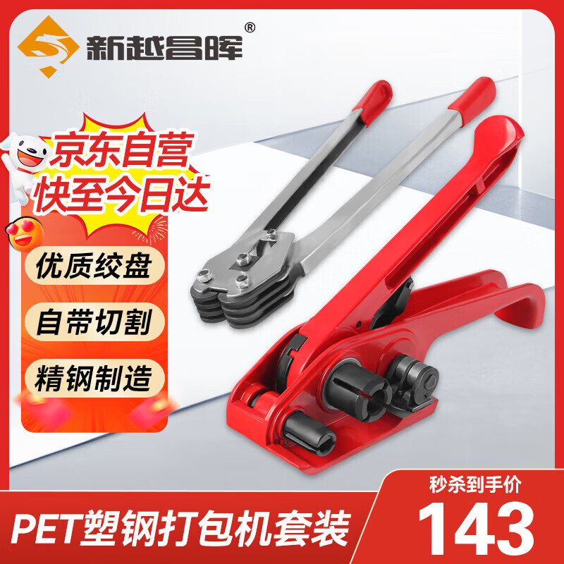 新越昌晖PET塑钢打包带手动打包机包装带打包机塑料捆扎带打包扣纸塑带捆绑带10kg套装DB-T1002