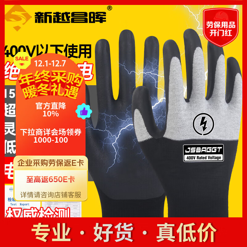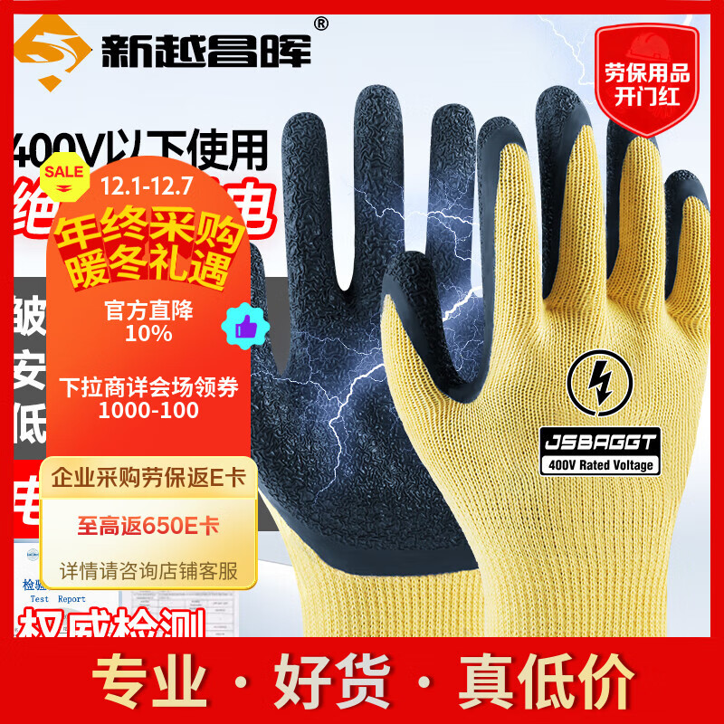 新越昌晖绝缘手套 400V电工手套 低压专用防电手套劳保工作防滑耐磨JY-BG