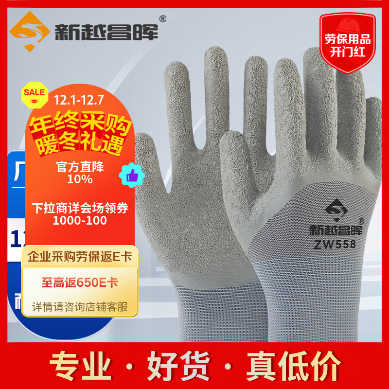 新越昌晖乳胶发泡王劳保手套 工地防护手套12副/均码 XY-S2217