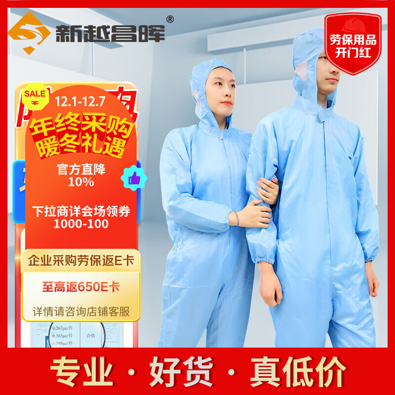 新越昌晖防静电白大褂 无尘工作服净化防尘服车间工作衣男女2XL码