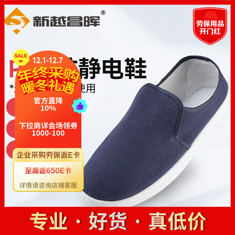 新越昌晖防静电鞋 无尘鞋 车间工作透气鞋 PVC软底防滑耐磨帆布鞋男女41码JD-X1