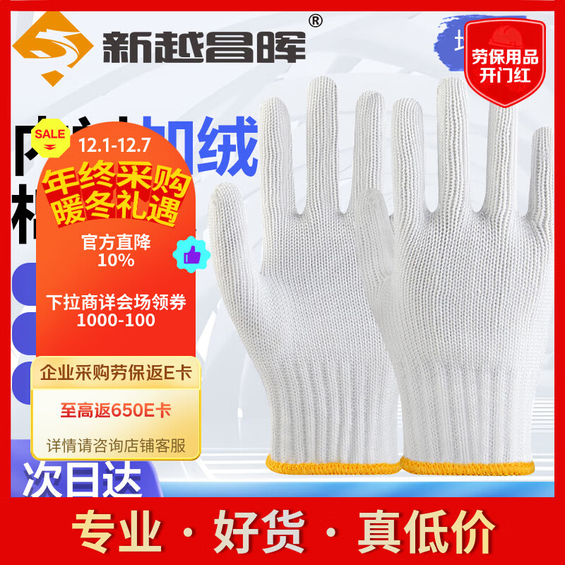 新越昌晖 劳保手套 12双/包 加厚加绒棉线手套 防滑耐磨工地工作纱手套B11409