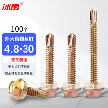 冰禹 BY-383 彩锌外六角自攻自钻螺丝钉 钻尾燕尾螺丝 12# 4.8*30(100个/包)