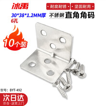 冰禹加厚不锈钢L型角码 连接件角铁支架(配螺丝)直边6孔30x38x1.2mm厚 10个/包 BYT-492