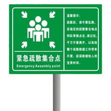 竹特 疏散指示牌 紧急疏散集合点 紧急集合逃生指示牌 铝板贴膜 60*80含2.5米高立柱 货期2天(企业定制)