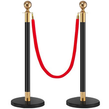竹特 礼宾柱围栏黑金色 (含红色绒布绳)一米线护栏杆 银行宾馆酒店机场栏杆座隔离带 2支装 (企业定制)