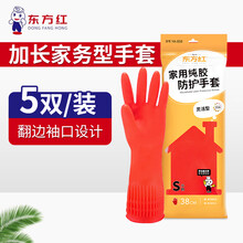 东方红 5双装橡胶洗碗手套乳胶厨房耐用中长款小号S