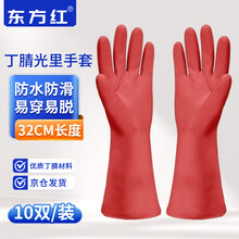 东方红 DL-700J 红色10双胶皮橡胶长袖手套45cm加长防水加厚耐用耐磨