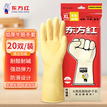 东方红 20双橡胶手套厨房家务洗碗乳胶手套加厚牛筋款加大号