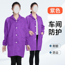 苍道条纹翻领纽扣大褂电子食品新能源无尘车间男女工作服 紫色带小工帽 M