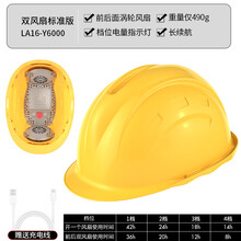 苍道国标工地安全帽内置风扇制冷带双风扇夏季头盔降温神器 黄色 国标双风扇标准版(LA16)