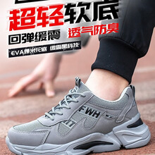 双安劳保鞋男款超轻便软底透气防砸防刺穿安全钢板钢头工作四季款 灰色 35