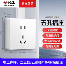 BULL 公牛明装插座开关双控单控面板家用空调五孔明线电源灯G59白系列 明装升级大板-五孔
