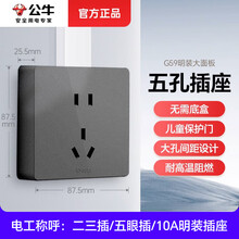 BULL 公牛明装插座开关双控单控面板家用空调五孔明线多孔插座G59灰系列 明装升级大板-五孔