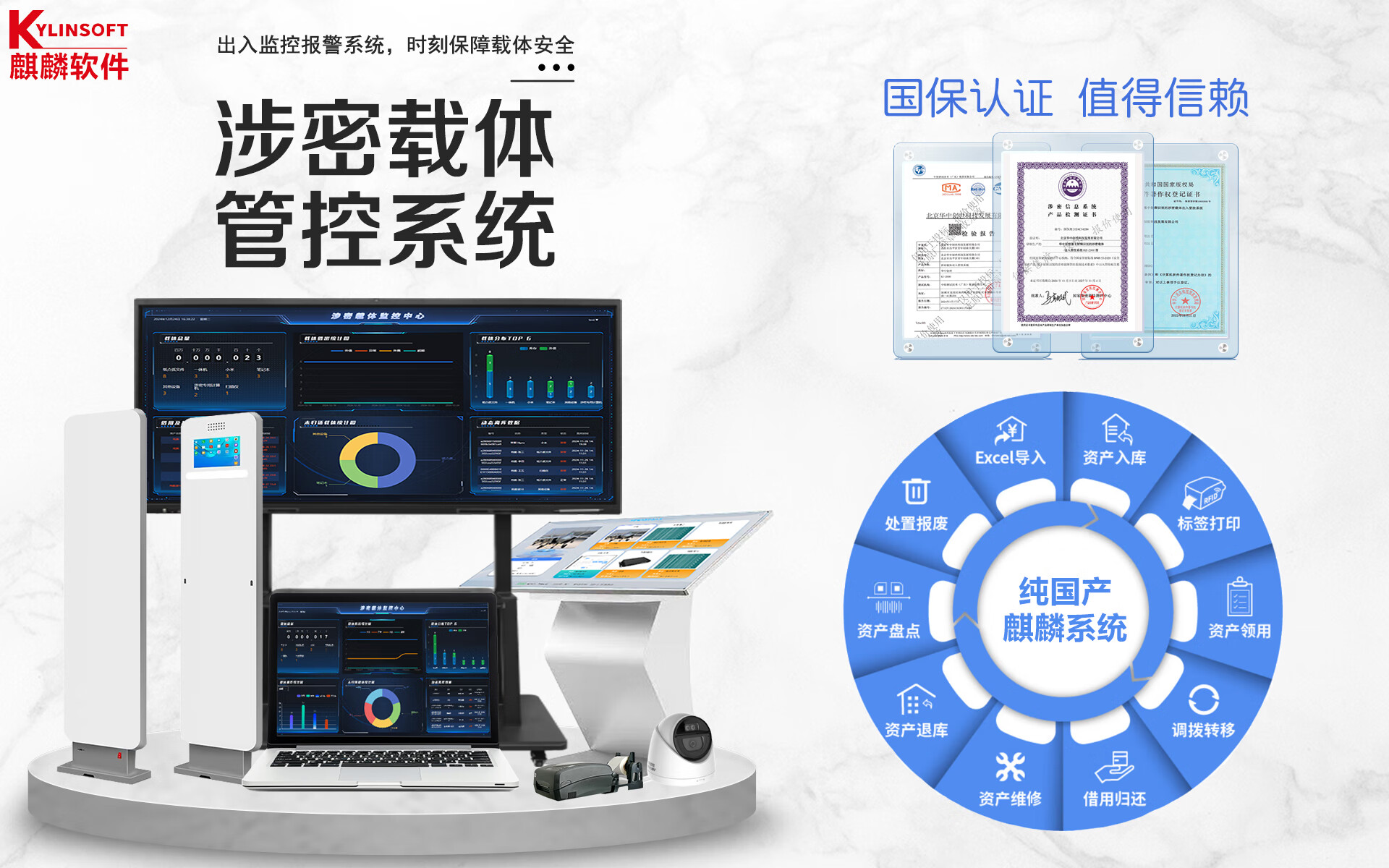 华中创世HZ-2000 保密载体出入管控系统V1.0 资产管理 智能门禁通道门(软件+硬件+标签)含施工+调试